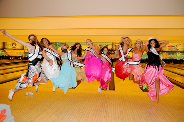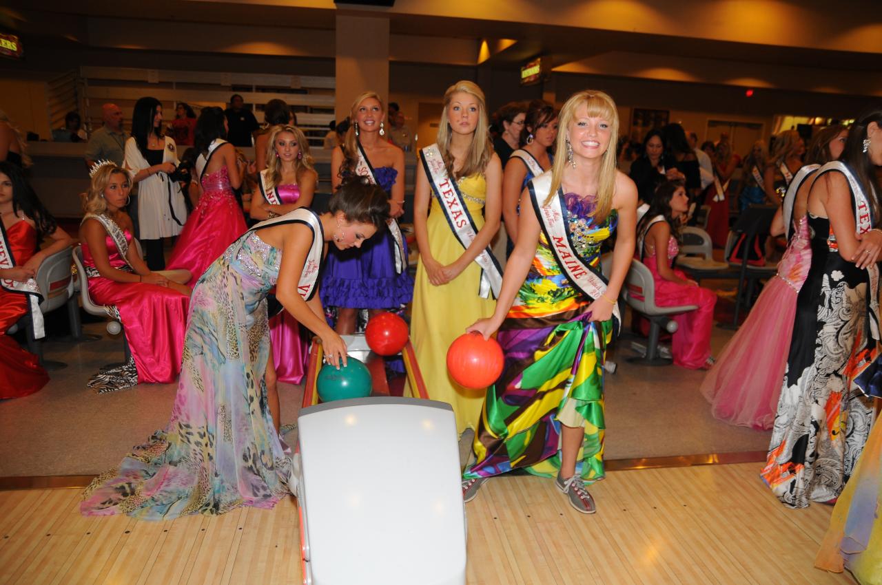 Part of the pageant activities included a fun day at the bowling alley while wearing gowns! Girls got to let loose and enjoy time with each other while still practicing their poise and grace at the bowling alley. Below are some strike-ing pictures taken on July 8, 2011 during the fun event!